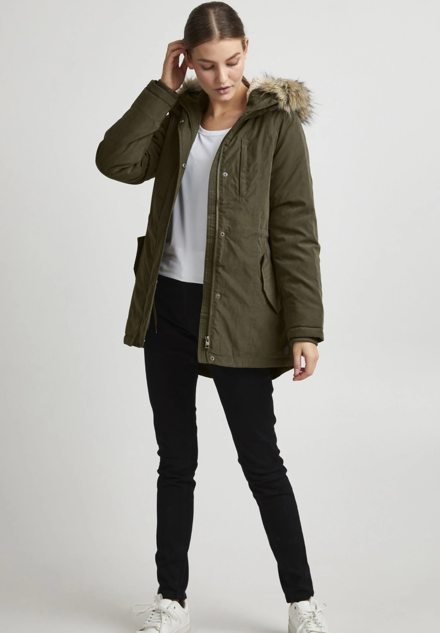 | Kaptur | Odpinany kołnierz ze sztucznego futra |